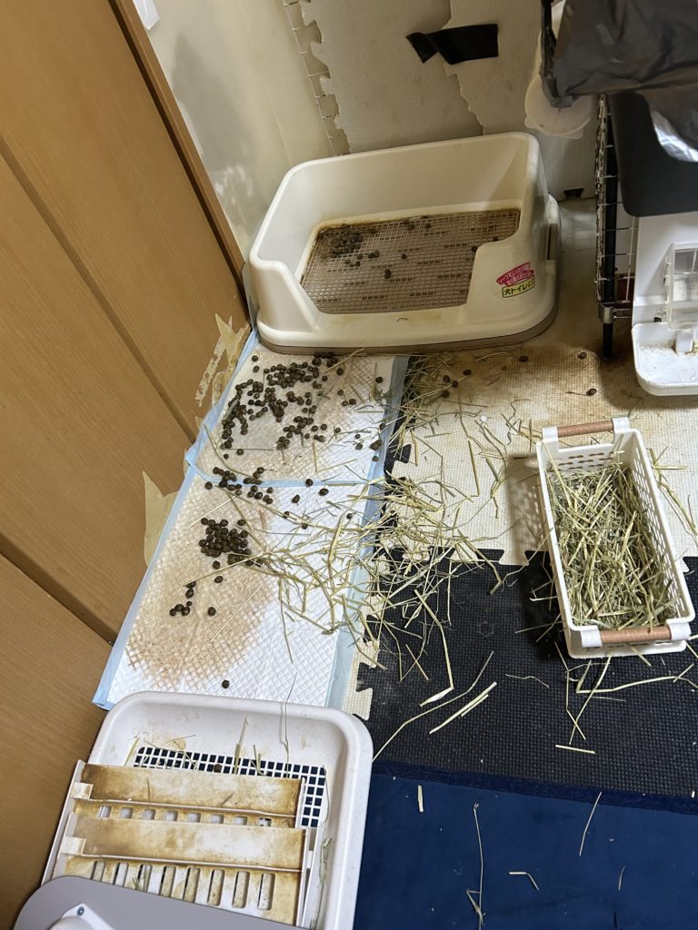 ゲージで飼う場合は、うさんぽの時間以外はゲージの中なので、比較的トイレでしてくれます。