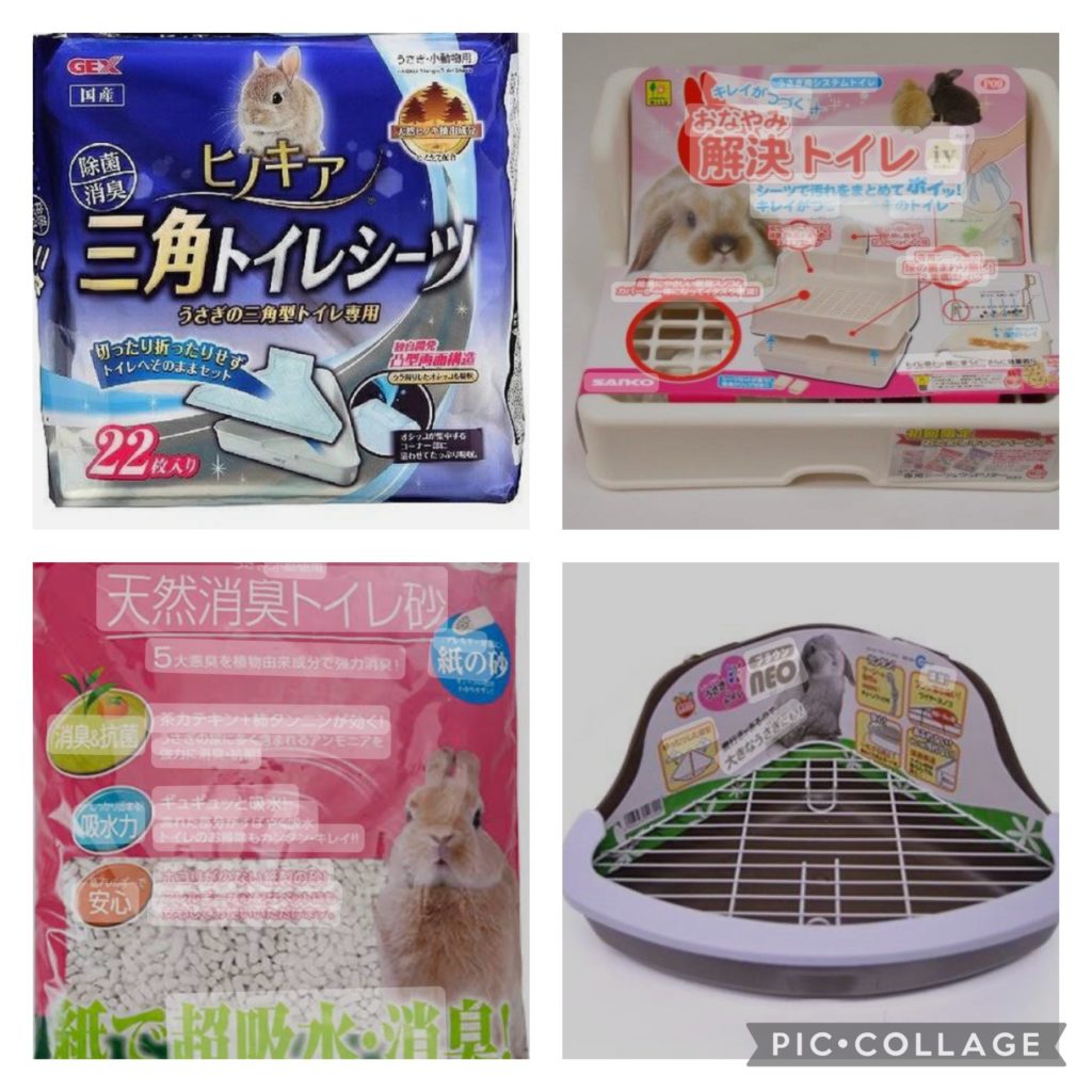 トイレも三角と四角があったり、砂やトイレシートもあるので、ご自宅やうさぎさんの好みで選ぶと良いと思います。