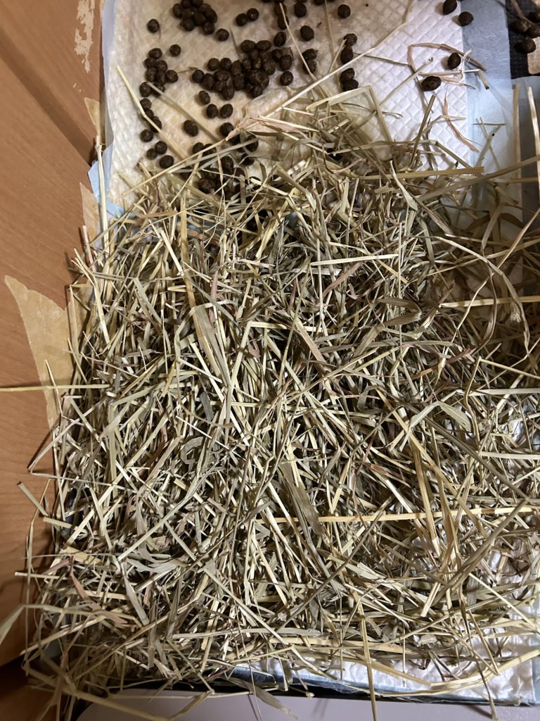 写真じゃわかりづらいし、前の茶色のチモシー(扉側)の上に新しい緑のチモシーを置いているのですが、新しいのも少し茶色から分かりにくいですが、こんな感じです。って写真で見たら全くわからんな(笑)
