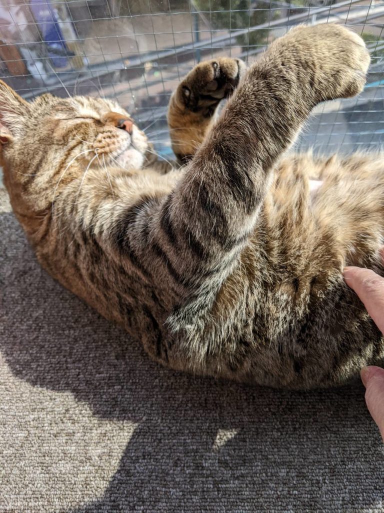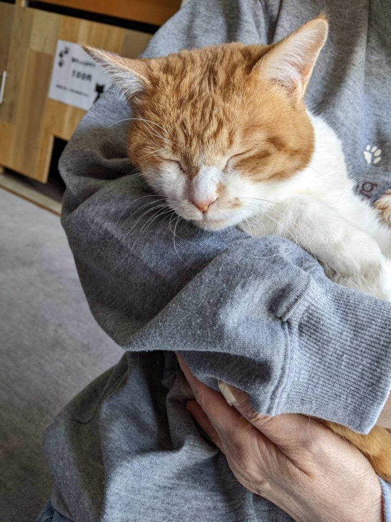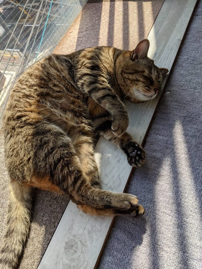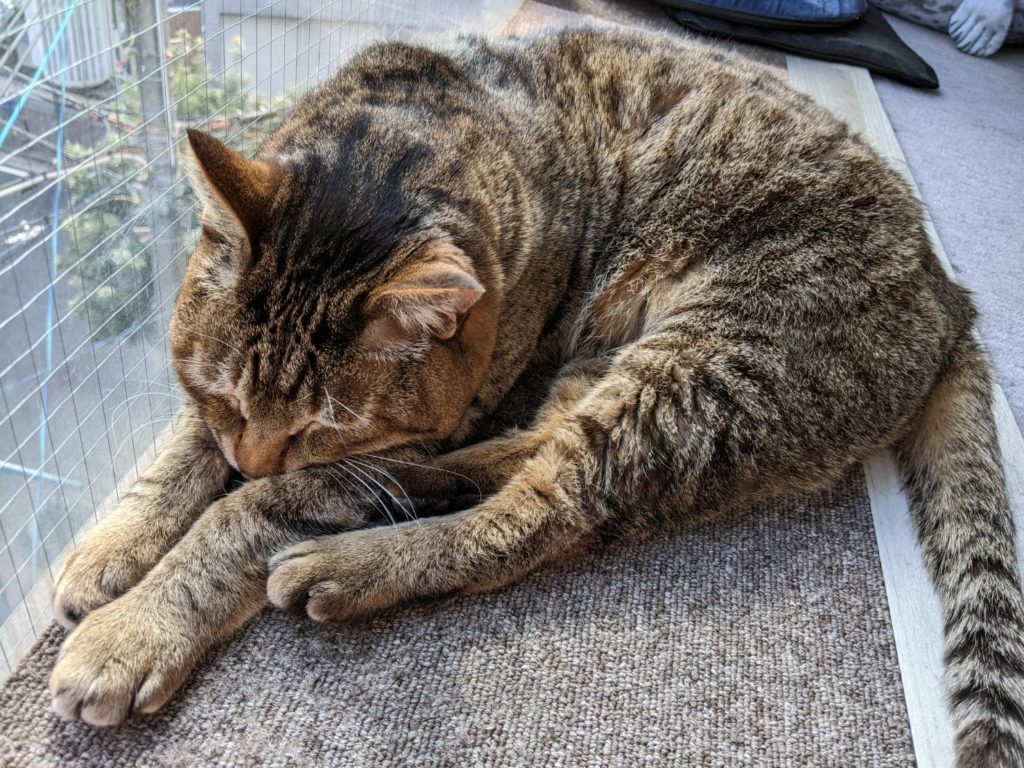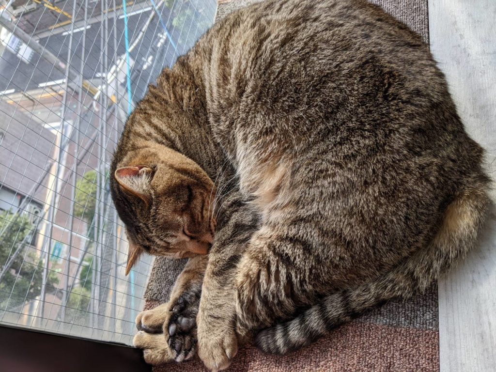 眠っていたけど、まーちゃんと呼ぶとニャーっと言って振り向いてくれました。