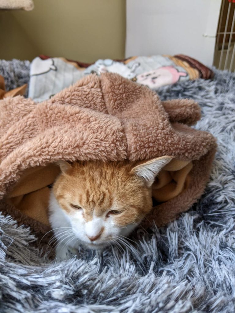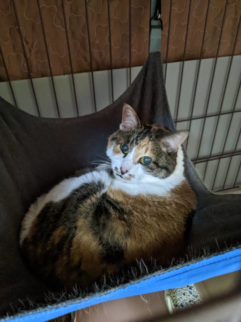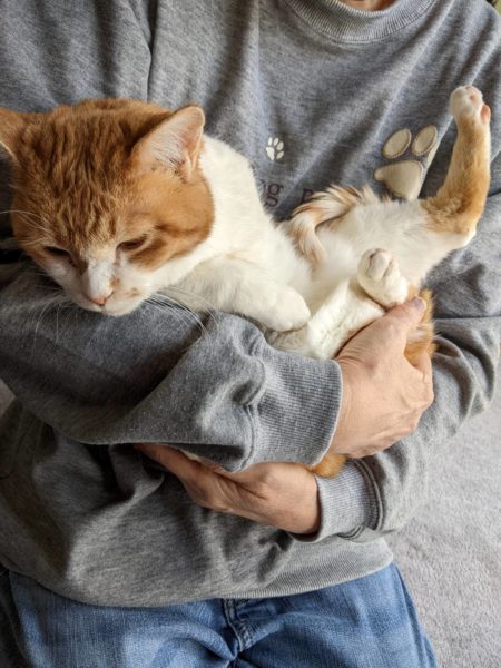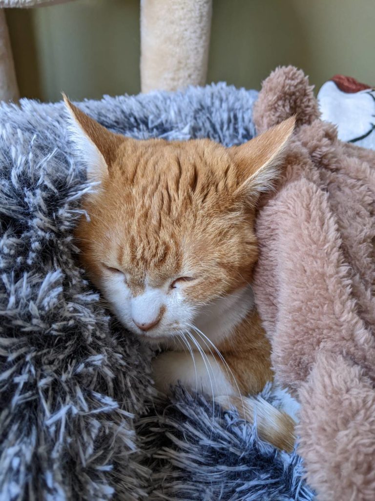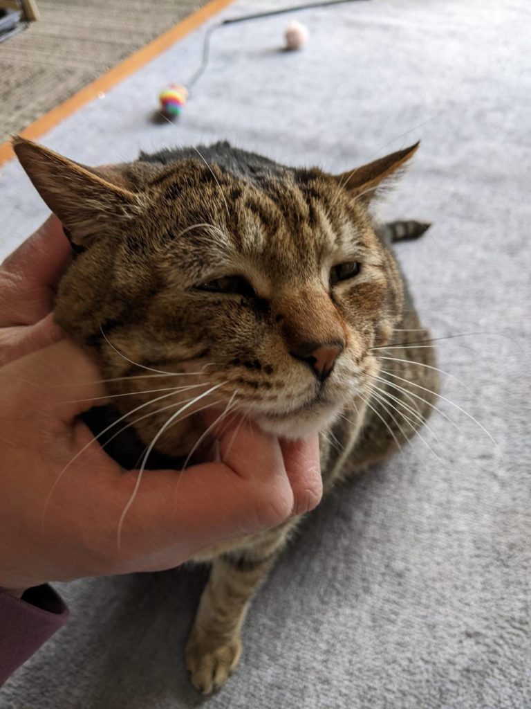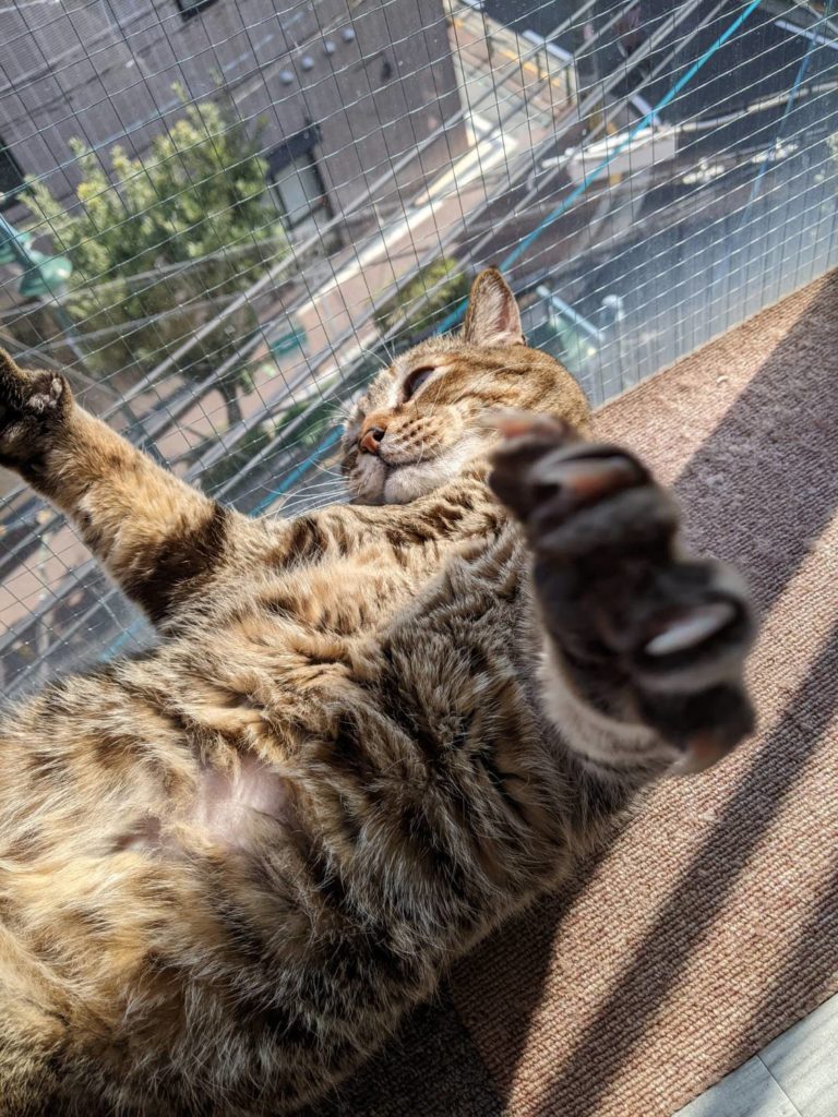 眠っていたけど、まーちゃんと呼ぶとニャーっと言って振り向いてくれました。