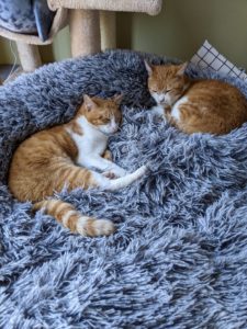 眠っていたけど、まーちゃんと呼ぶとニャーっと言って振り向いてくれました。