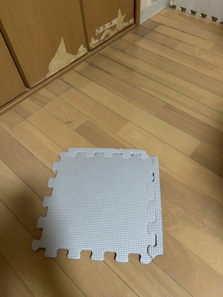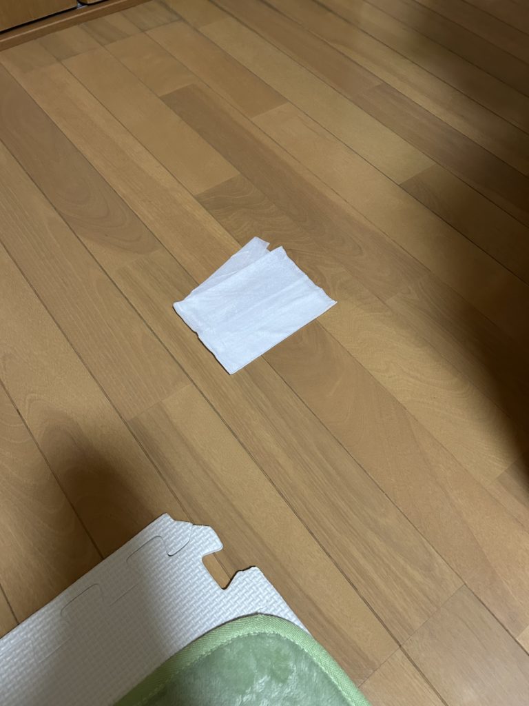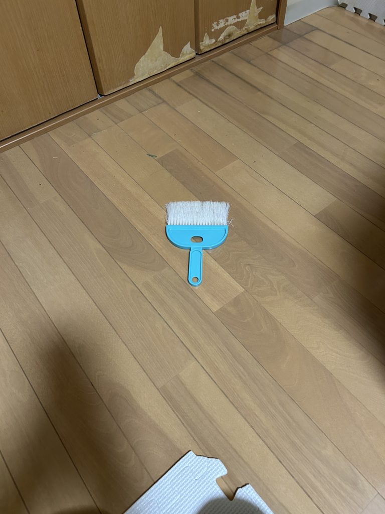 ゴミをフローリングに落としてジョイントマットのうえに乗せます。