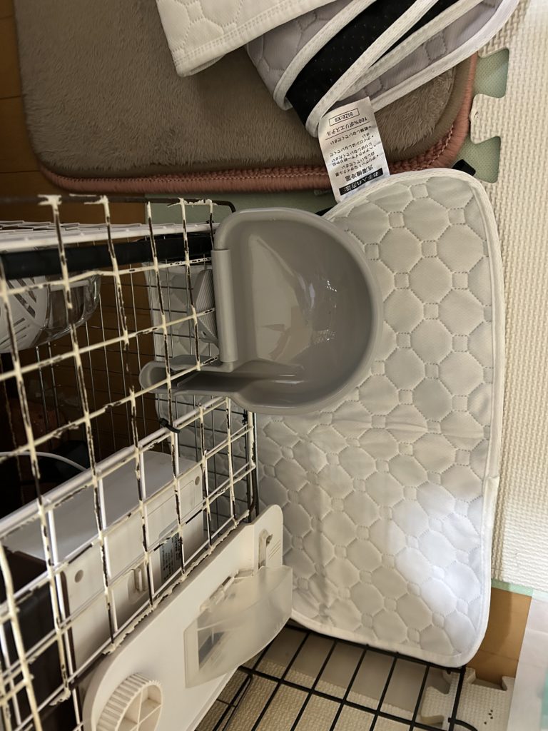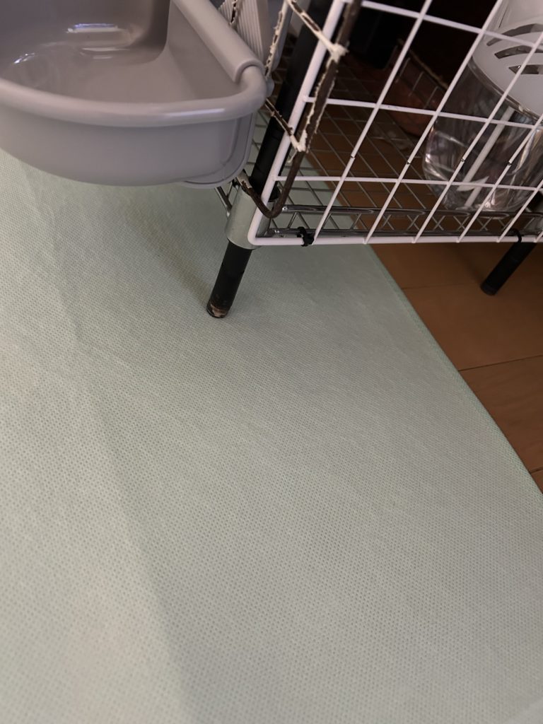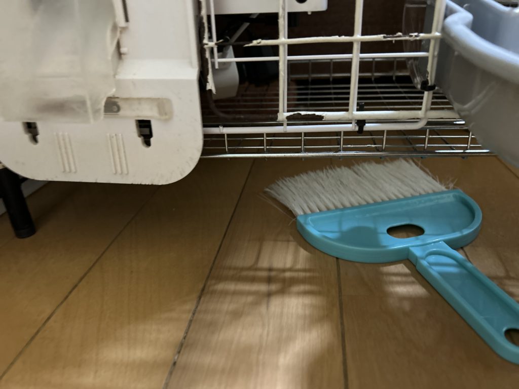 ペレット入れの下は、手が入らないのでなかなか綺麗にはけないけど頑張ります。これ以上は高くするとうさぎさんが飲み食いがしにくい高さになるのでこれ以上は上げれないので仕方ないのです。