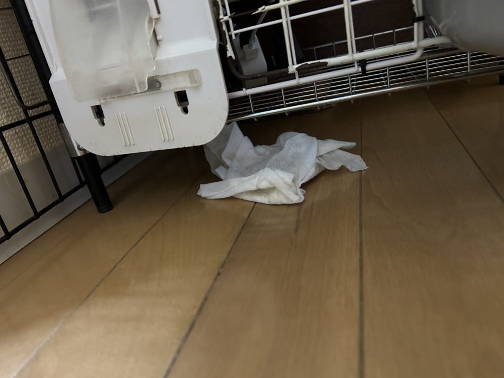 まぁ、色々バッサバッサしたので、再度水入れを拭きます。