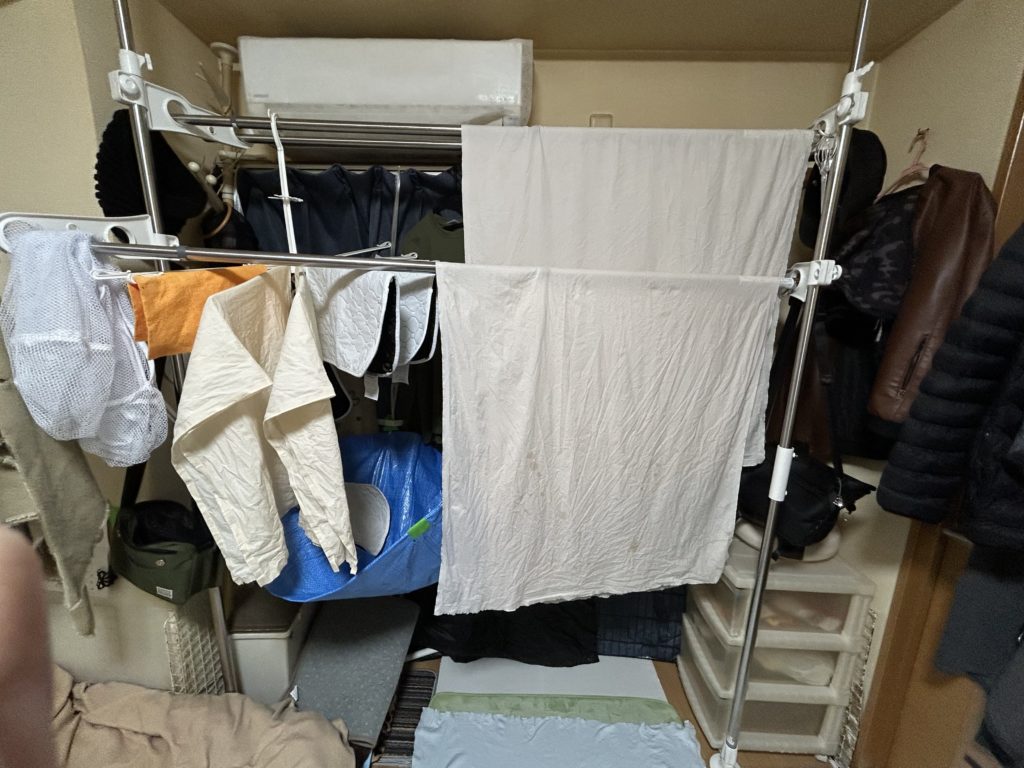 洗えるトイレシートは、底面が防水なので、これも前回話した通り運なので、バランス良く干します。