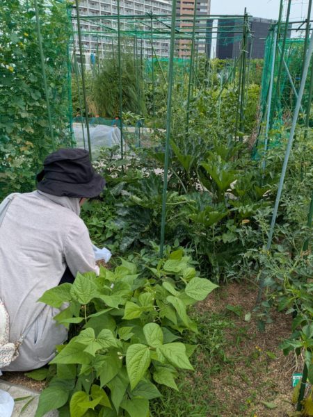 収穫して、追肥して、ネット貼りは途中で辞めて、勇気の撤退です。