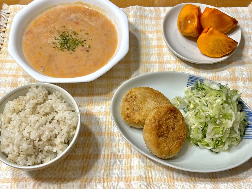 その他は、付け合わせでトマトと大豆のポタージュとセロリとキャベツの野菜サラダになります。