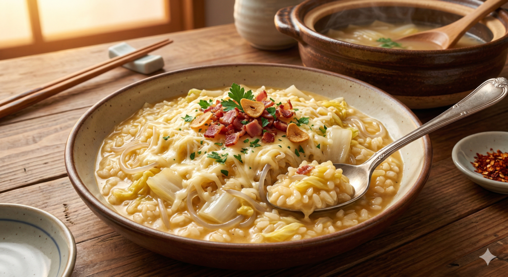 - 濃厚チーズリゾット: ご飯とピザ用チーズを投入。豆乳とチーズの相性は抜群です。
