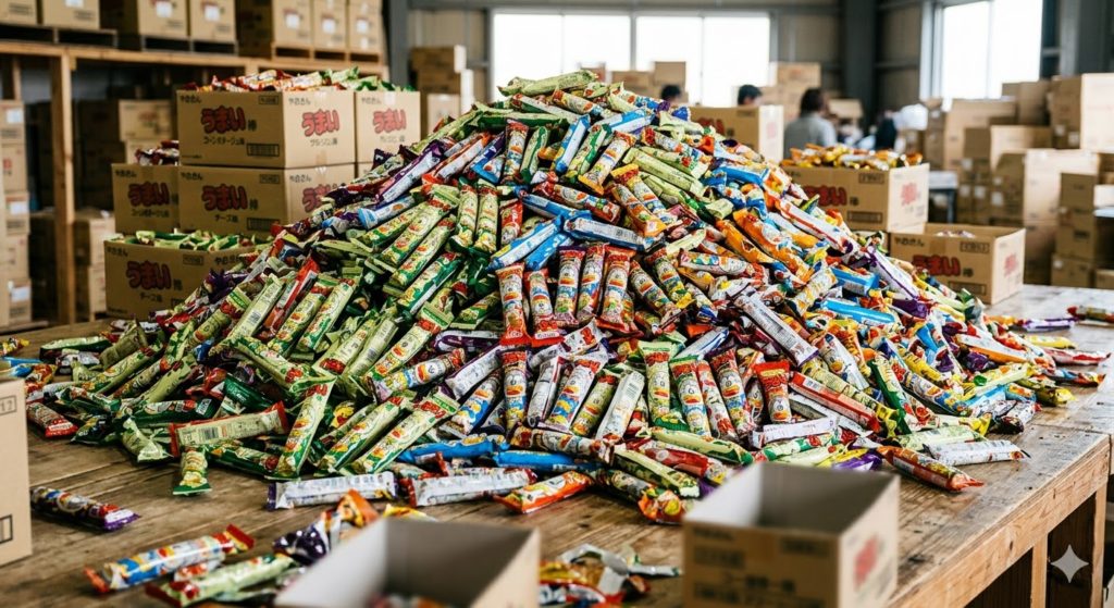 チャージの100円分をきれいに使い切りたかったので、レジ横の相棒・うまい棒を3本追加。