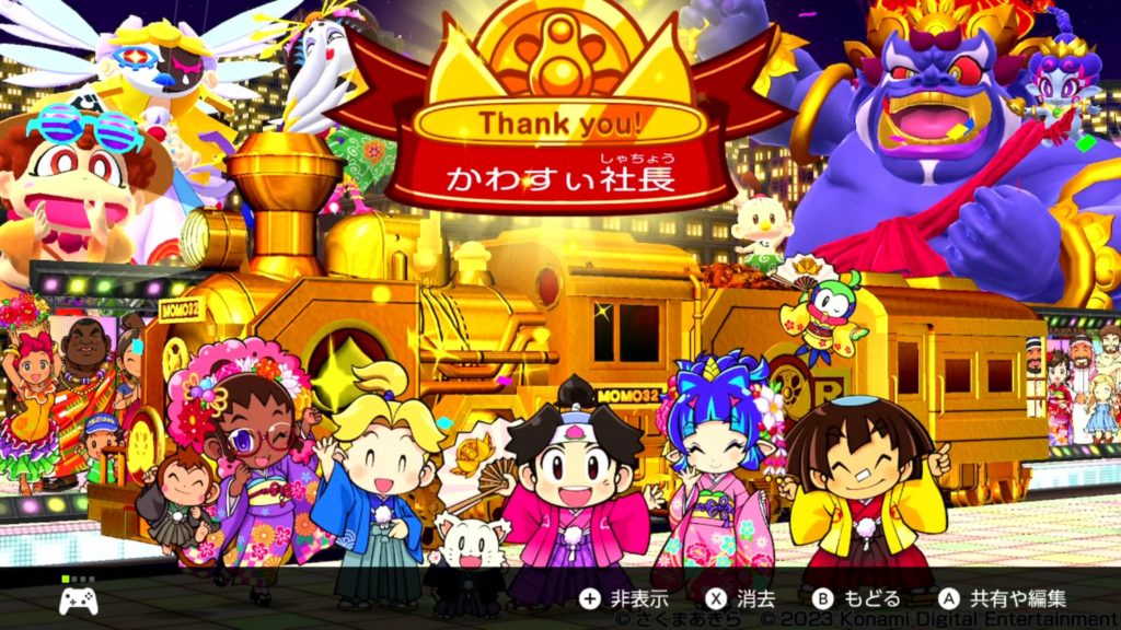 桃鉄ワールド100年プレイ 列車のデザインを色々選べるのでとりあえずピザーラデザインの列車でスタート。70年目に全物件独占を達成。 達成したら列車を黄金デザインに変更出来ました。そして100年プレイを終えて無事に優勝。クリアするとシナリオモードと...