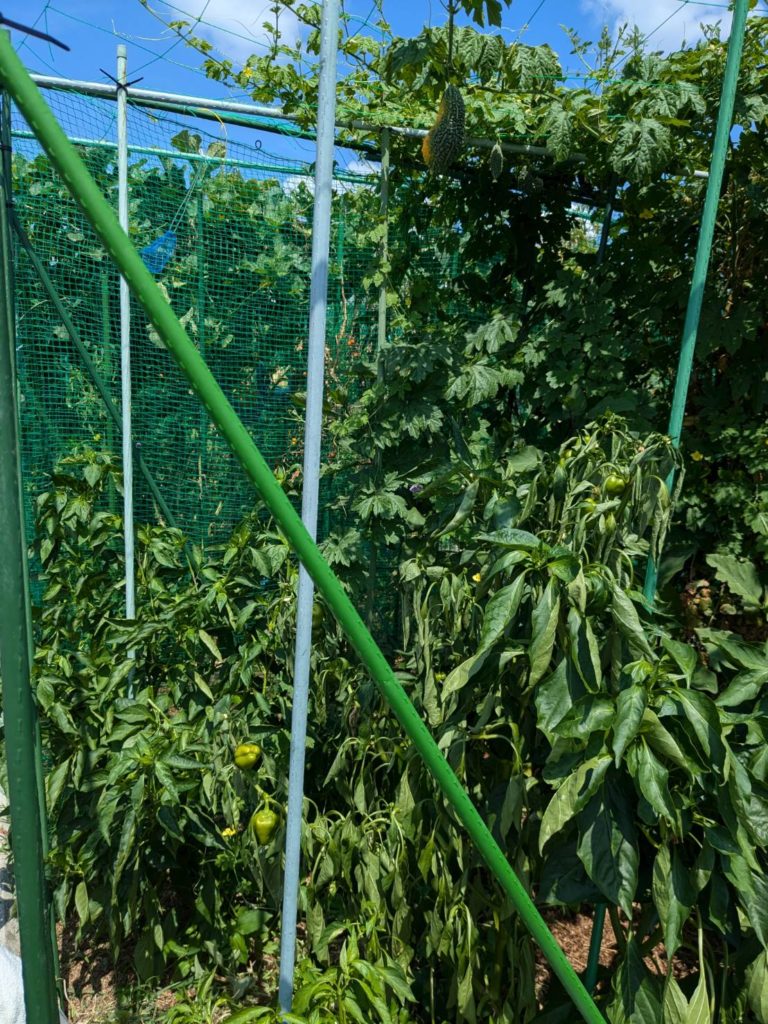 今週の農業体験は・・・ この日は39度はありそうです ゴーヤがお化けのように覆っています。凄い生命力です。 ゴーヤがたくさん 中は少し涼しい? 今日の収穫 ゴーヤゴーヤゴーヤ ゴーヤ祭りの今週でした。 -
